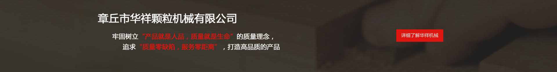 公司成立于1997年,前身為章丘市華祥機(jī)械廠(主營:顆粒機(jī),飼料顆粒機(jī),有機(jī)肥造粒機(jī),有機(jī)肥設(shè)備,木屑顆粒機(jī),顆粒生產(chǎn)線等), 公司是集機(jī)械制造,成套設(shè)備設(shè)計(jì),安裝于一體的現(xiàn)代企業(yè),由鑄造、機(jī)械加工、合成組裝、設(shè)計(jì)開發(fā)、網(wǎng)絡(luò)營銷五個(gè)聯(lián)合單位構(gòu)成。主要生產(chǎn)飼料加工機(jī)械,生物質(zhì)燃料機(jī)械,有機(jī)肥生產(chǎn)設(shè)備三大系列產(chǎn)品。 華祥機(jī)械牢固樹立“產(chǎn)品就是人品,質(zhì)量就是生命”的質(zhì)量理念,追求“質(zhì)量零缺陷,服務(wù)零距離”,打造高品質(zhì)的產(chǎn)品。 精心的設(shè)計(jì)、精湛的制造、精細(xì)的施工、全方位的服務(wù),以及華祥人長期秉持“讓我們共同前進(jìn)”的理念,使華祥贏得了良好的社會信譽(yù),產(chǎn)品遠(yuǎn)銷意大利、越南、緬甸、澳大利亞等全球多個(gè)國家和地區(qū),產(chǎn)品質(zhì)量和信譽(yù)得到了廣大用戶的認(rèn)可。 未來,華祥人將繼續(xù)大力發(fā)揚(yáng)"誠信、創(chuàng)新、協(xié)作、效率"的企業(yè)精神,堅(jiān)持技術(shù)、產(chǎn)品、管理、服務(wù)創(chuàng)新,大力推進(jìn)產(chǎn)品精品化和市場國際化,全力打造“華祥”機(jī)械品牌形象。想客戶所想,為客戶創(chuàng)造價(jià)值,協(xié)助客戶的事業(yè)獲得成功;"華祥"人充滿信心,滿懷希望,真誠期待與您共贏。